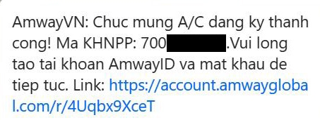 Khi bạn làm hồ sơ đăng ký lại vai trò nhà phân phối, công ty sẽ gửi về cho bạn 1 tin nhắn như bên dưới: